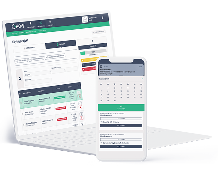 Twórz scenariusze zadań i przydzielaj zadania do odpowiednich pracowników, monitoruj postępy, wysyłaj powiadomienia i analizuj wyniki w systemie raportowym.
