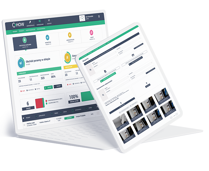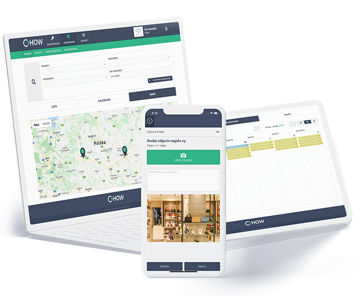 cHow to platforma typu Retail Intelligence składająca się z części webowej oraz aplikacji mobilnych dla systemów iOS i Android. Zastępuje e-maile, checklisty i excel’e wszędzie tam, gdzie potrzebne jest szybkie zebranie i przejrzyste przedstawienie informacji z wielu miejsc i od wielu osób. Porządkuje i usprawnia komunikację na wszystkich szczeblach organizacji. Ułatwia kontrolę i dostarcza trafnych insight’ów.